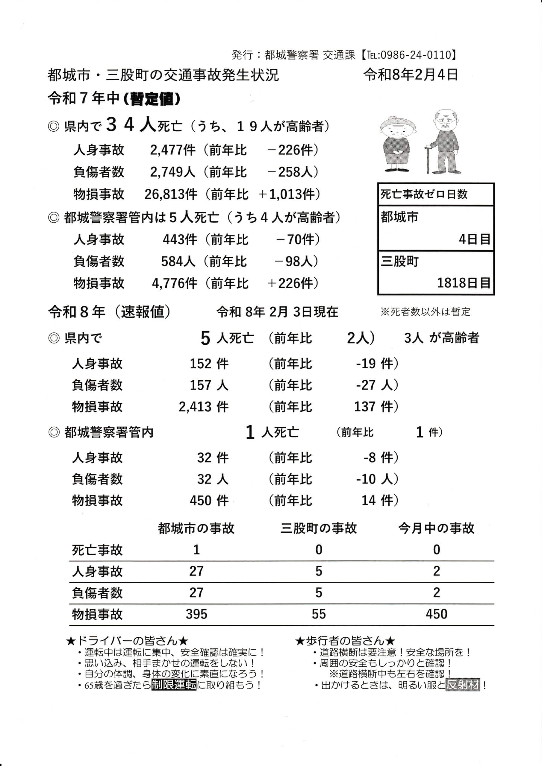 安全運転情報 各種資料のダウンロード、印刷はこちら 資料No.1 令和7年上半期交通事故発生状況 資料No.2 低調!後部座席シートベルト着用率 資料No.3 酷暑期の体調管理 資料No.4 自転車利用時のマナー 資料No.5 二輪車を安全に利用するために 資料No.6 飲酒運転 飲酒運転検挙件数 令和7年5月末現在 〇都城警察署管内28件(前年比+1) 県下 ワースト1位タイ 飲酒運転の罰則 〇酒酔い運転 5年以下の懲役 又は100万円以下の罰金 〇酒気帯び運転 3年以下の懲役 又は50万円以下の罰金 〇飲酒検知拒否 3ヶ月以下の懲役 又は50万円以下の罰金 〇車両を提供した者や酒類を提供した者、要求・依頼して乗車した人も罰せられます。
